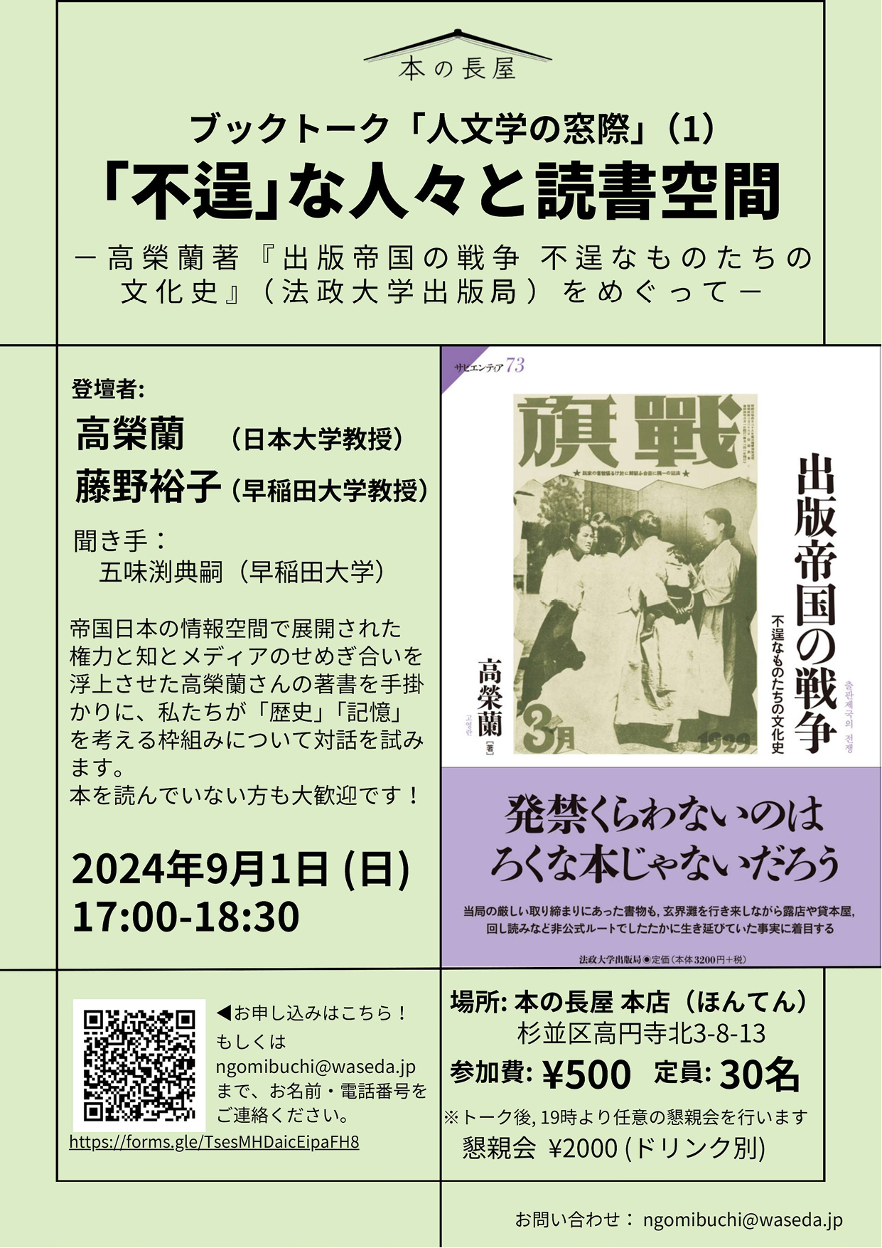 アリラン・ブックトークvol.17『出版帝国の戦争:不逞なものたちの文化史』(ゲスト:高榮蘭先生) (さらに…)